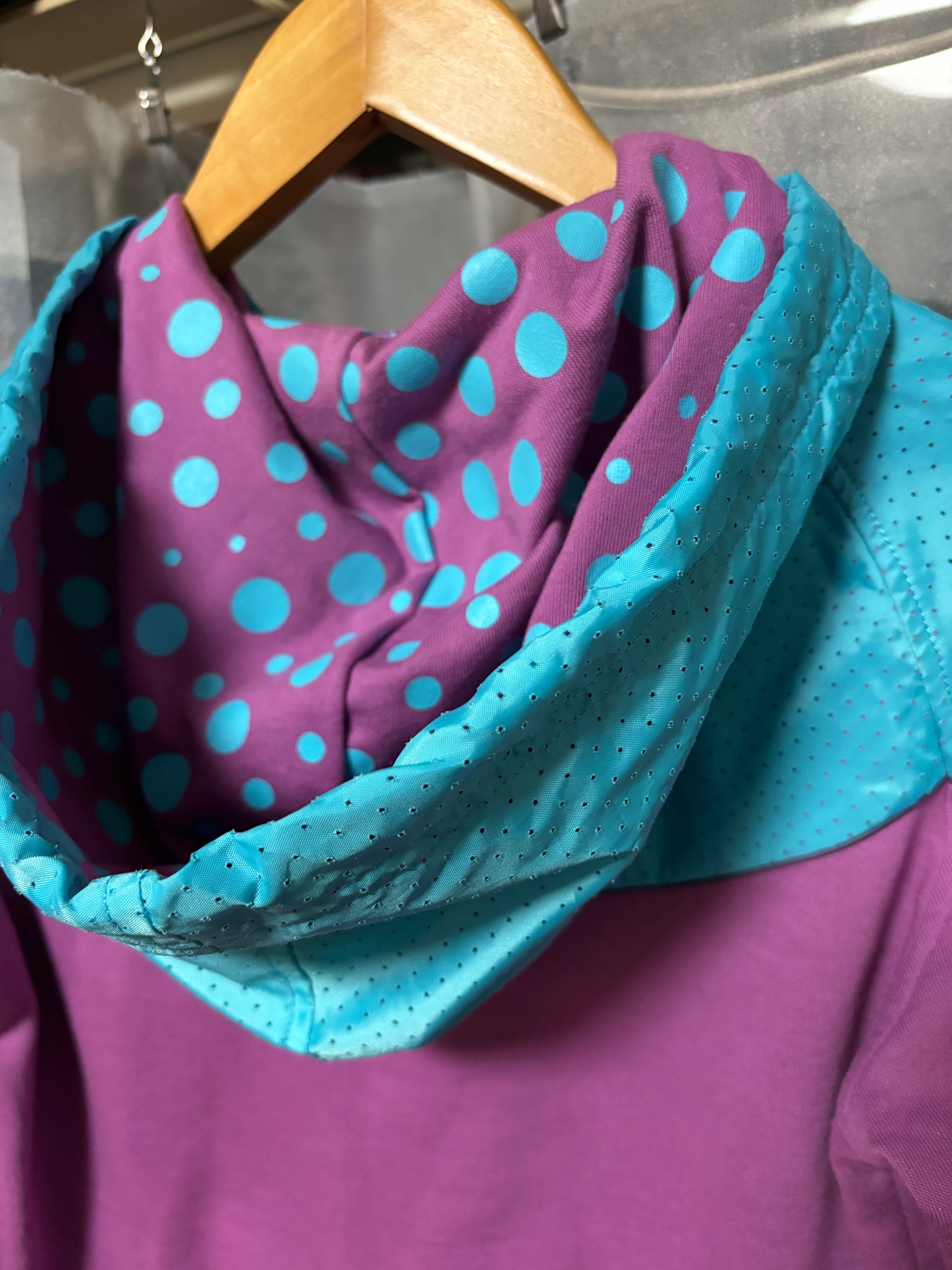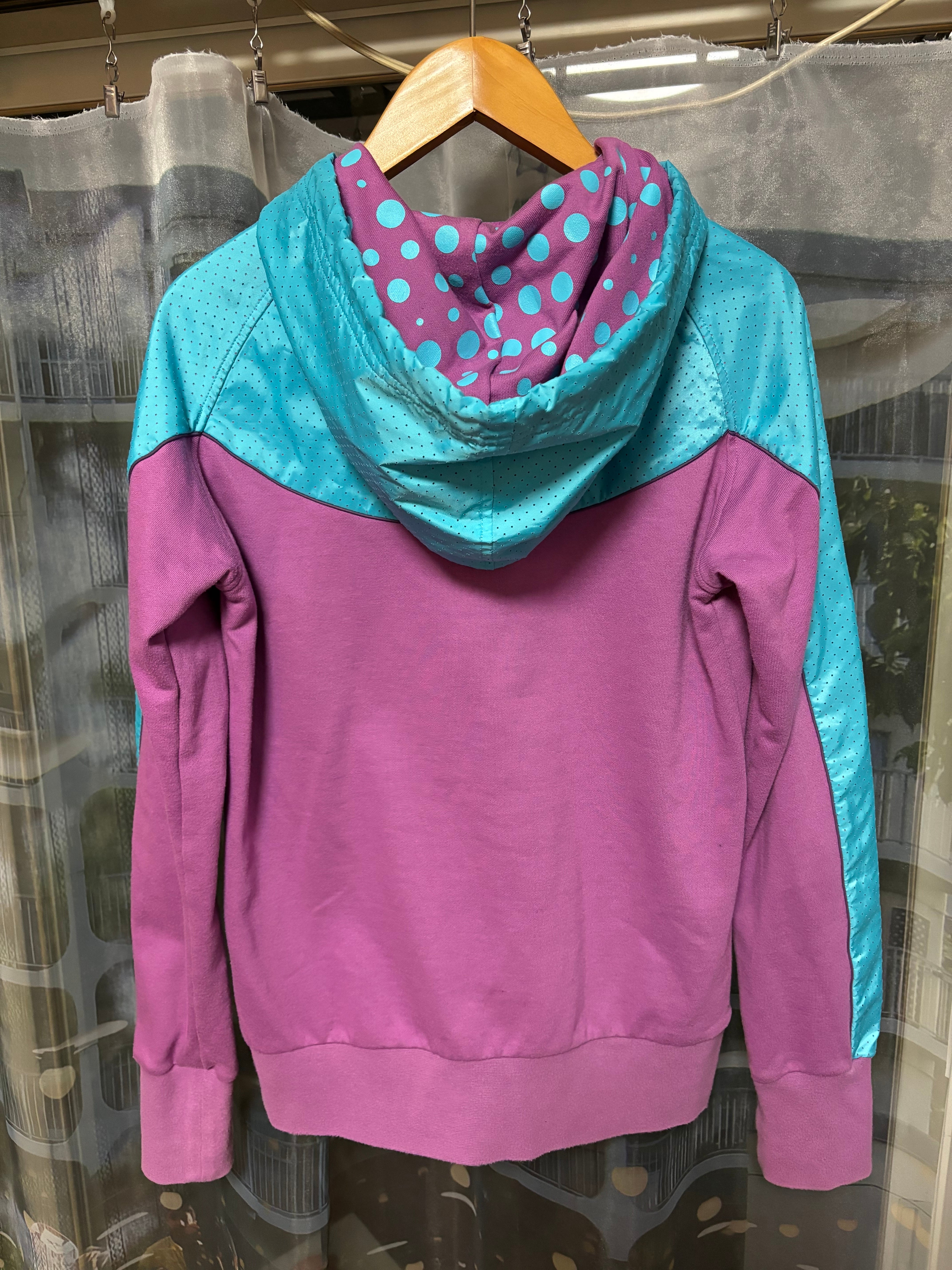 なかなか無いカラーリングに生地感の切り替え、フードの内側は水玉柄と、なんだかこの感じは気分です!タイトめなシルエットも凄く良い!