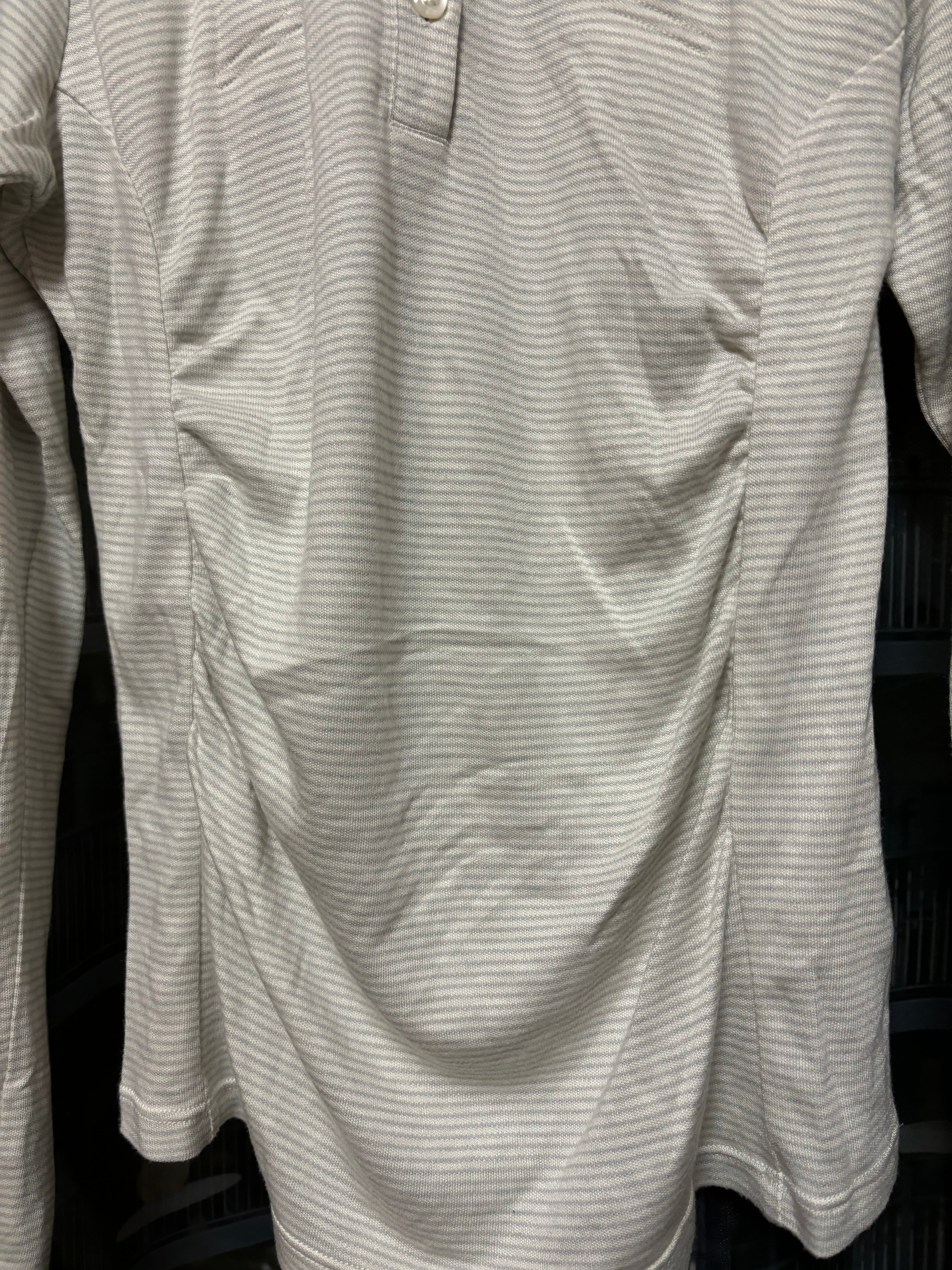 腹部や袖口にギャザー処理がされてたり、絶妙にデザイン性のあるポロシャツでかわいい。