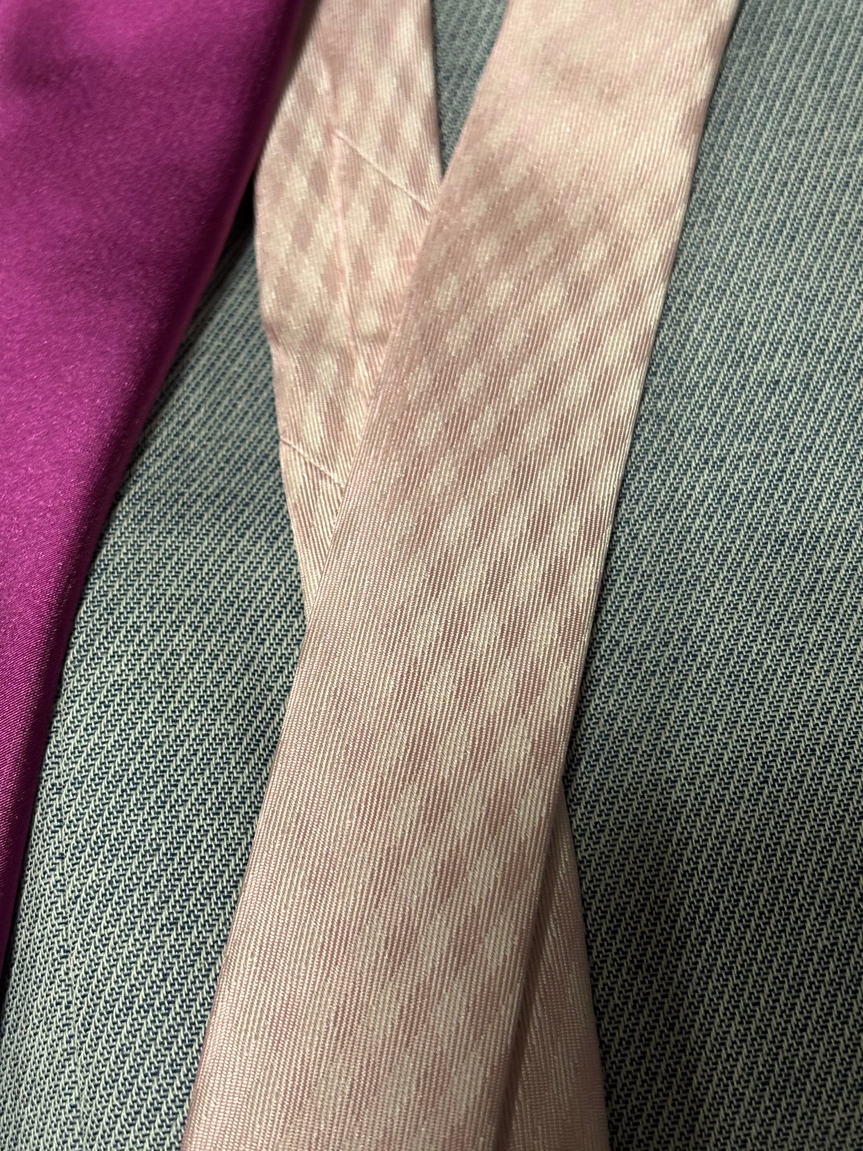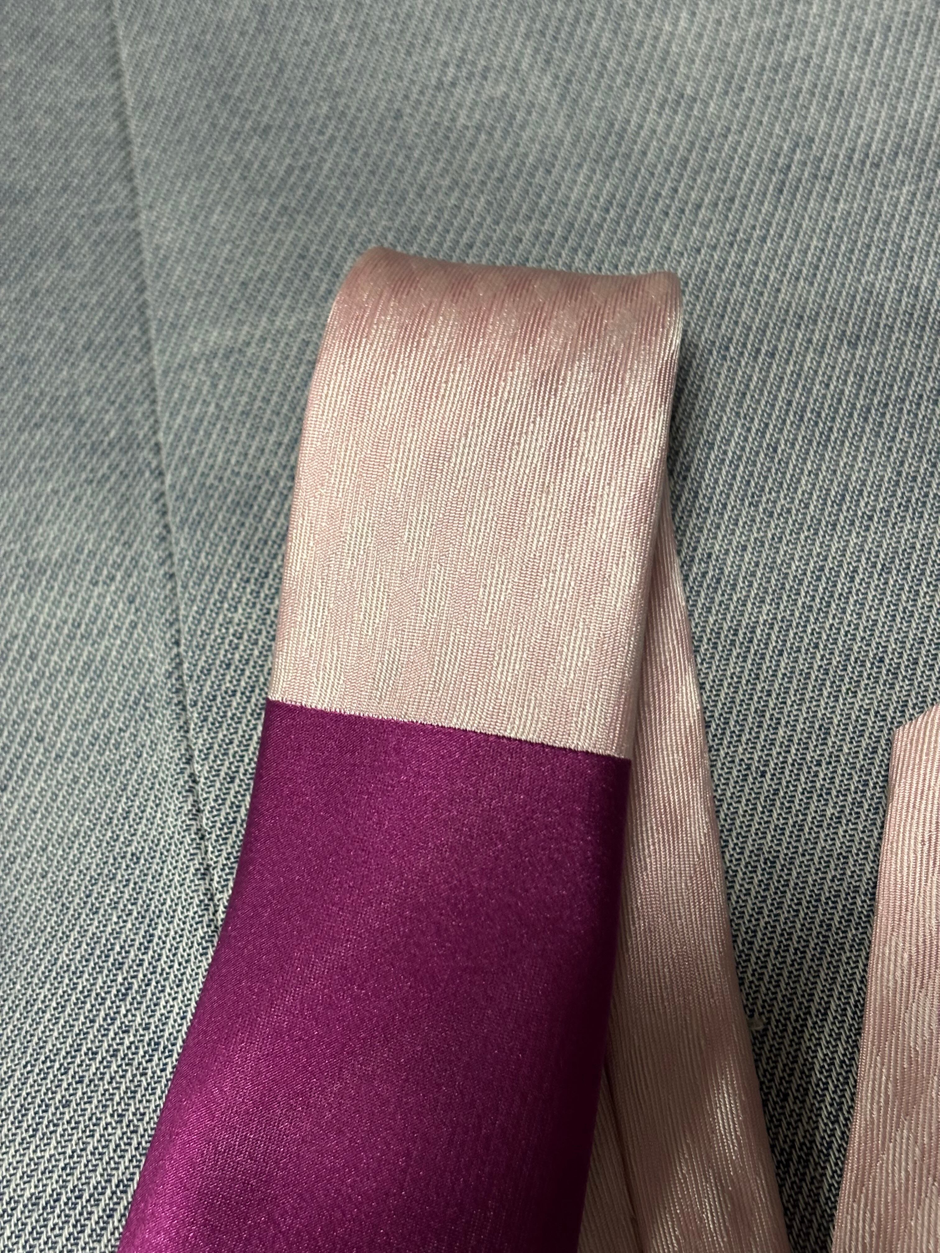 ペールピンク部分のチェック具合もめちゃ良いし、パープルのサテンというのもクールです。白シャツやグレーのシャツとかに合わせて欲しい!
