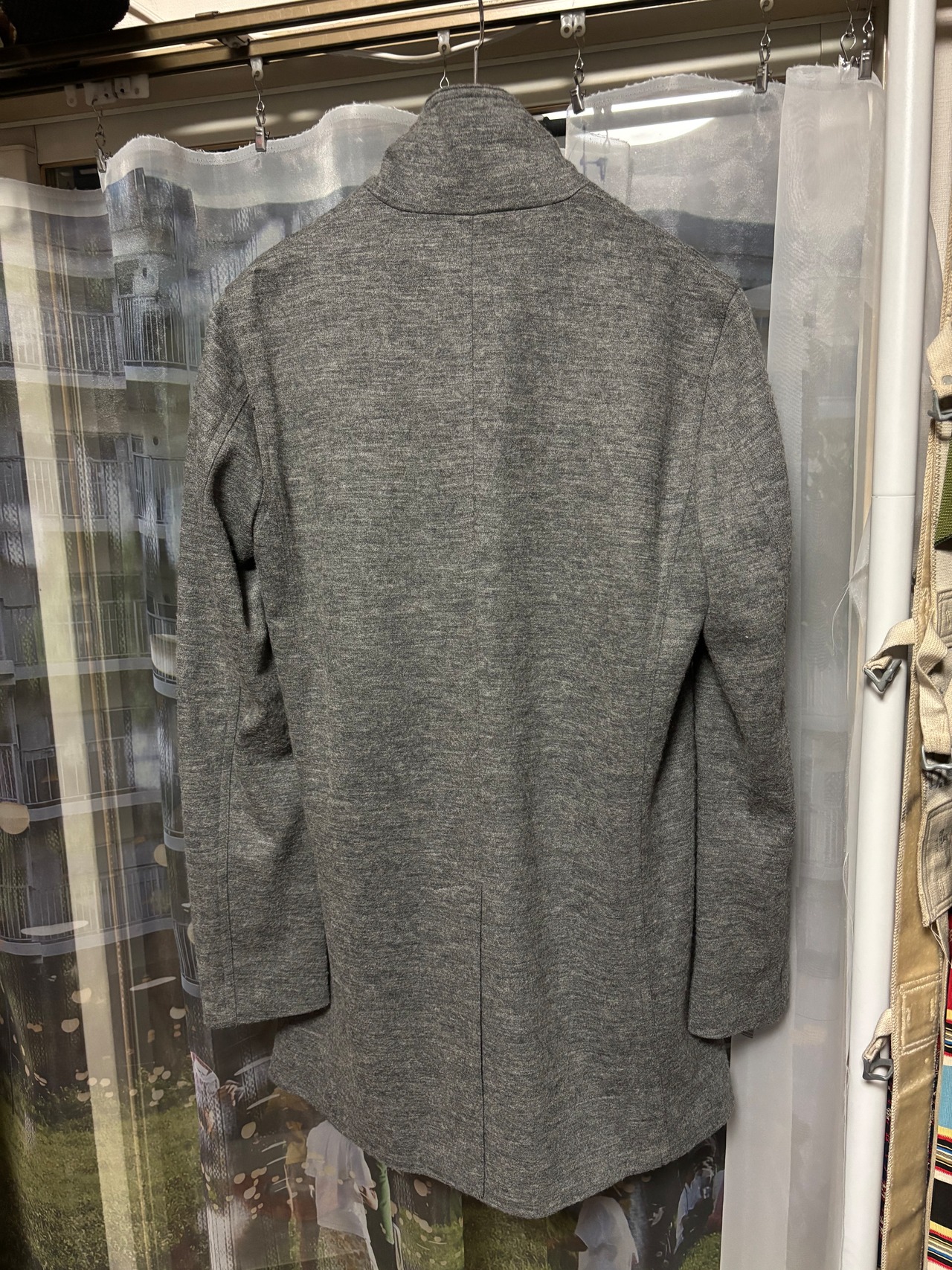 ウール地ですが薄手なので、冬ならインナーに、春にちょうど良さそうな生地感かと思います!