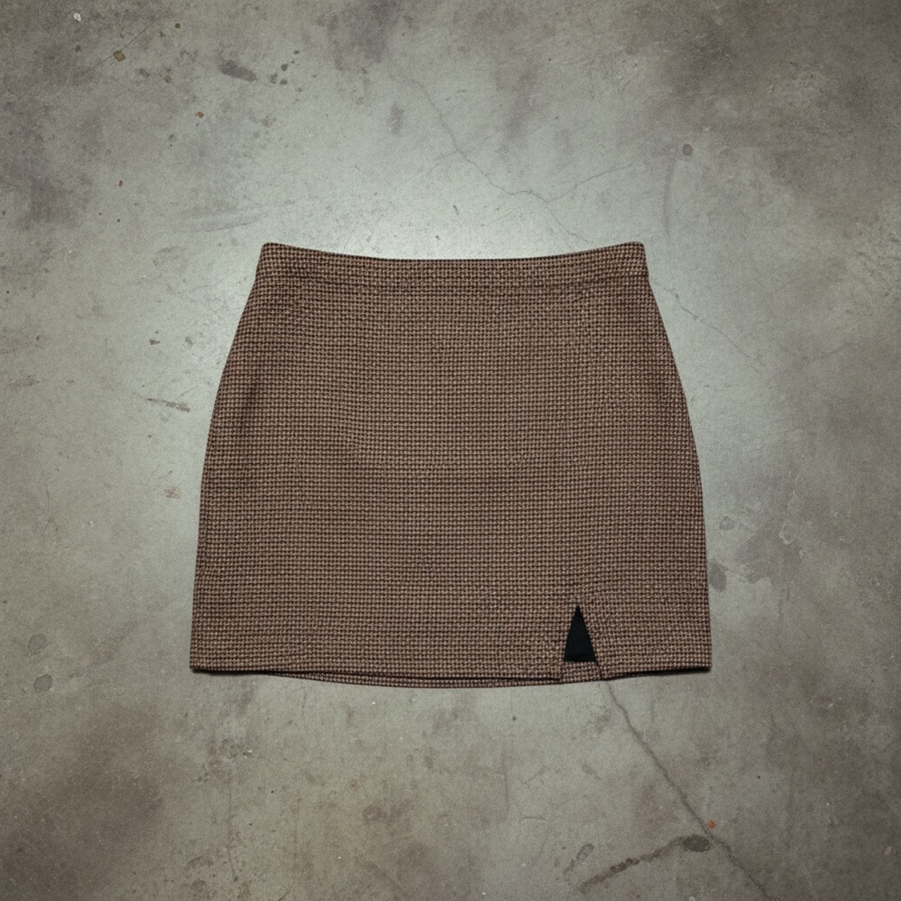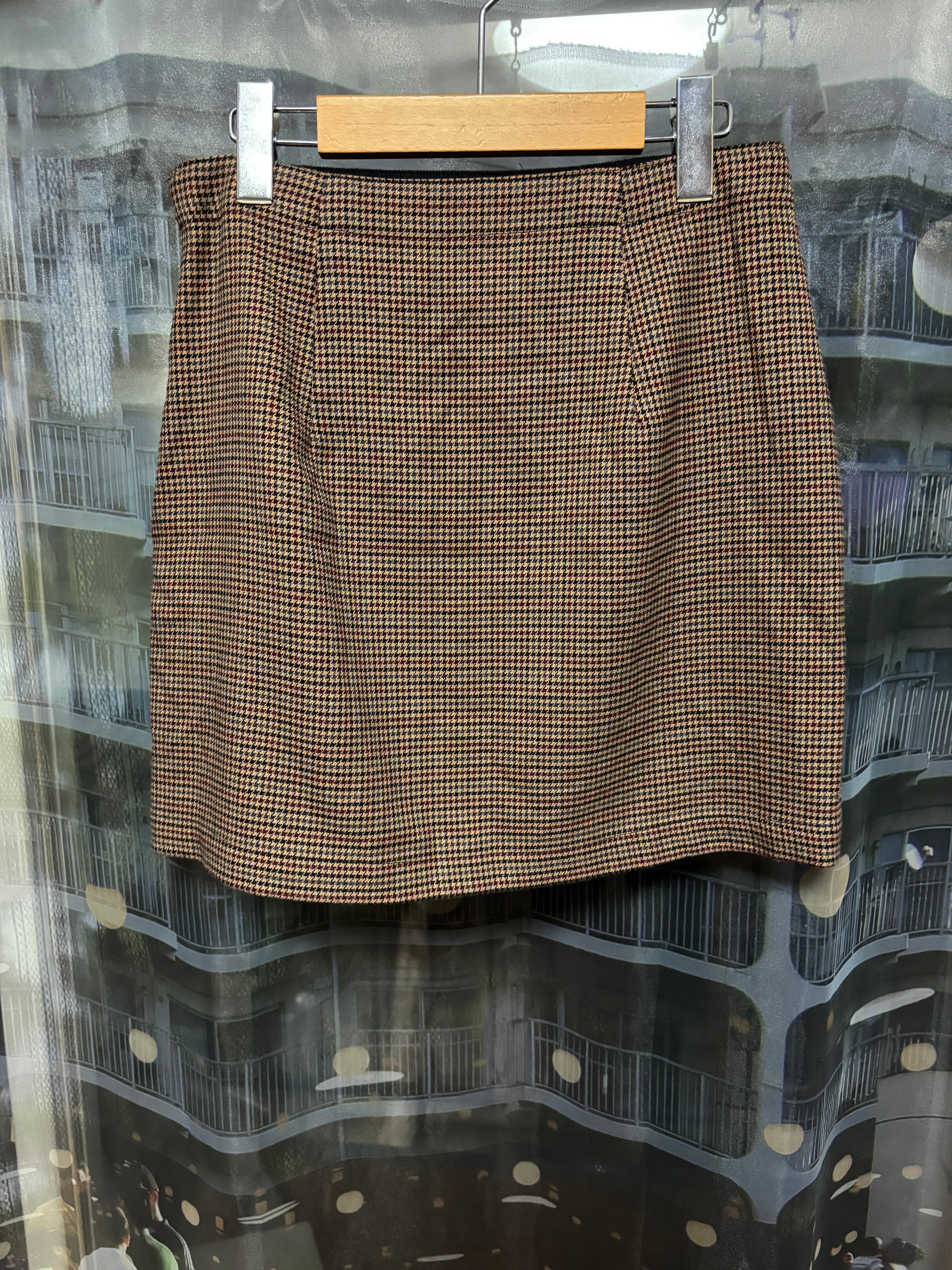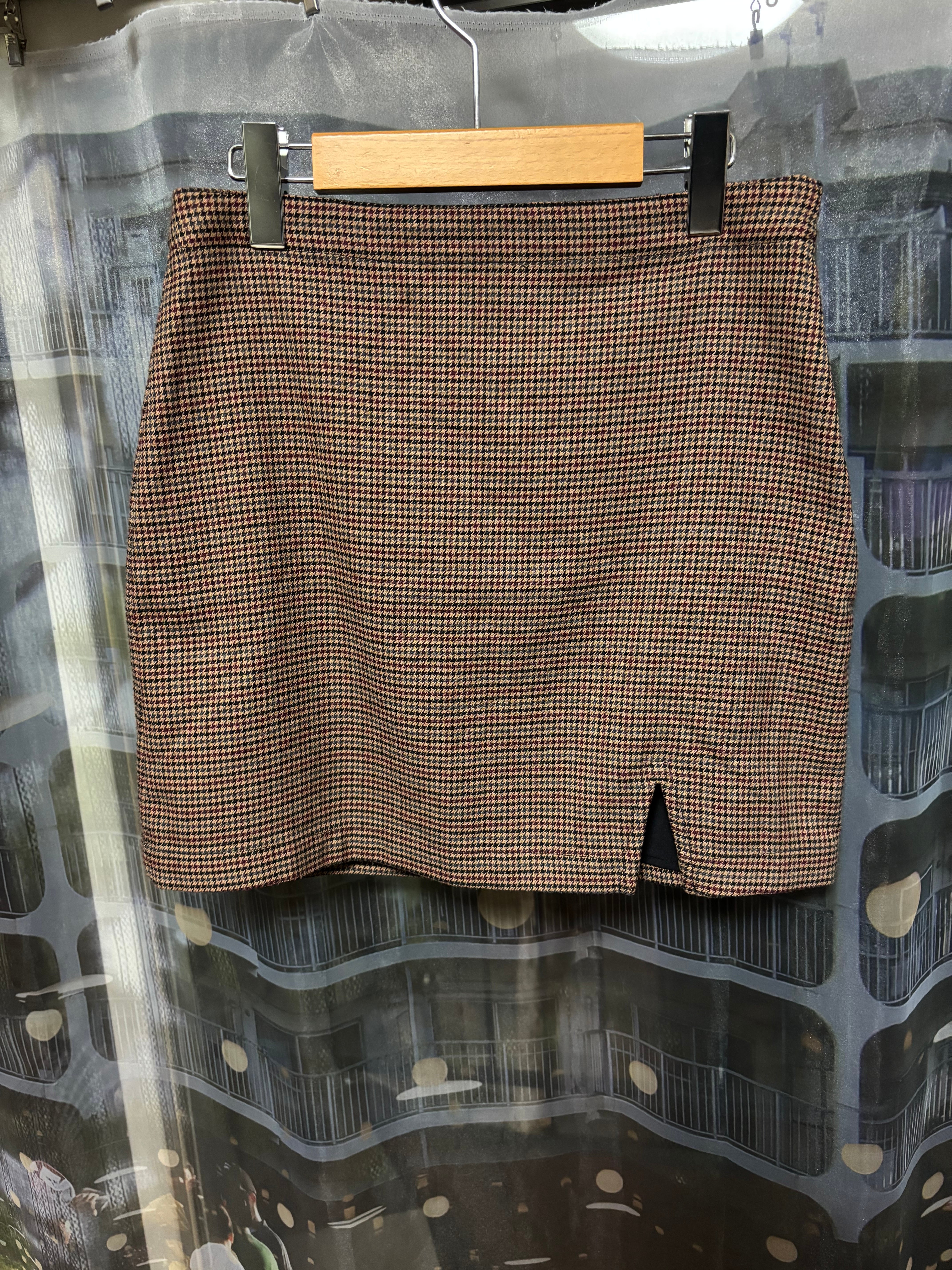 こちらは色味も作りもかなり地味めベーシックな千鳥格子柄のミニスカ、スクールガールや事務員ノリで絶妙な取り入れ方にトライしてみて欲しい一着!