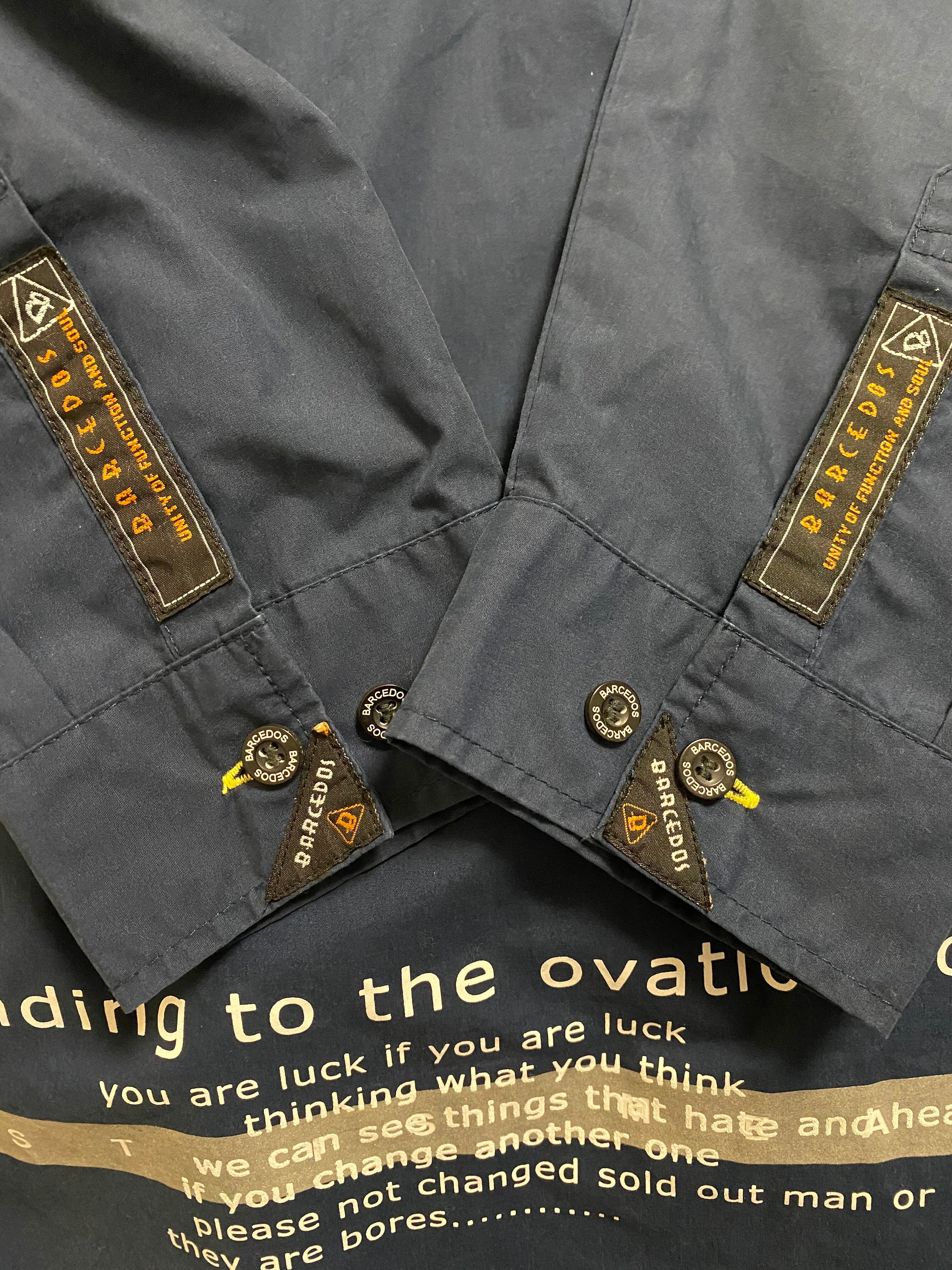いかにも2000'sな旬のムード満点、紺色ボディに黄色糸やリフレクタープリントやメーカーロゴが良いバランスでアクセント効いてます!袖はジップで取り外し可能で、S/SでもL/Sでも半分だけジップを開けたりしてもいいし、1着で色々と楽しめそうなお得なシャツです。