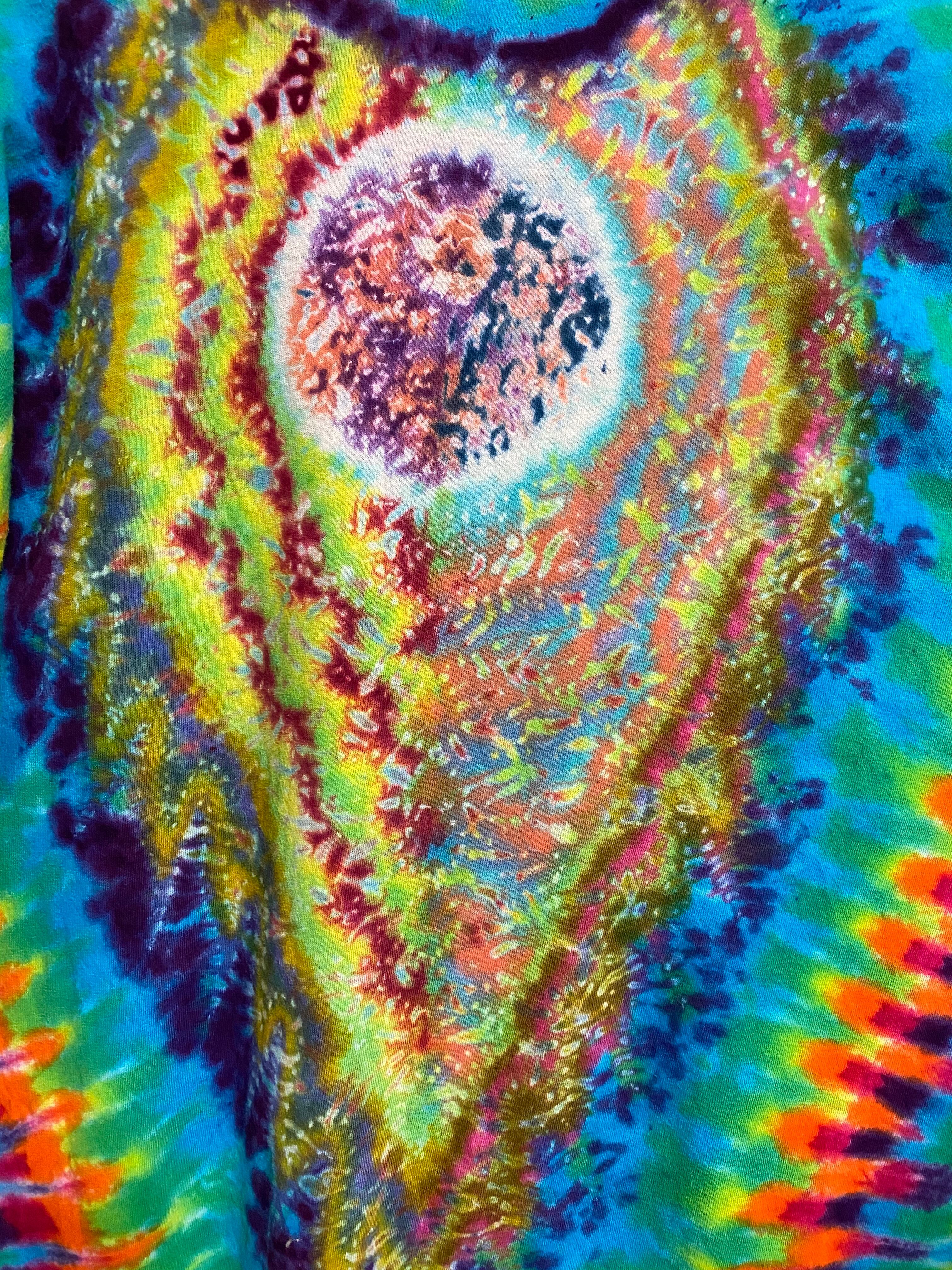 かなり凝った細かい染めの細工がサイケ感抜群で良いタイダイT。
