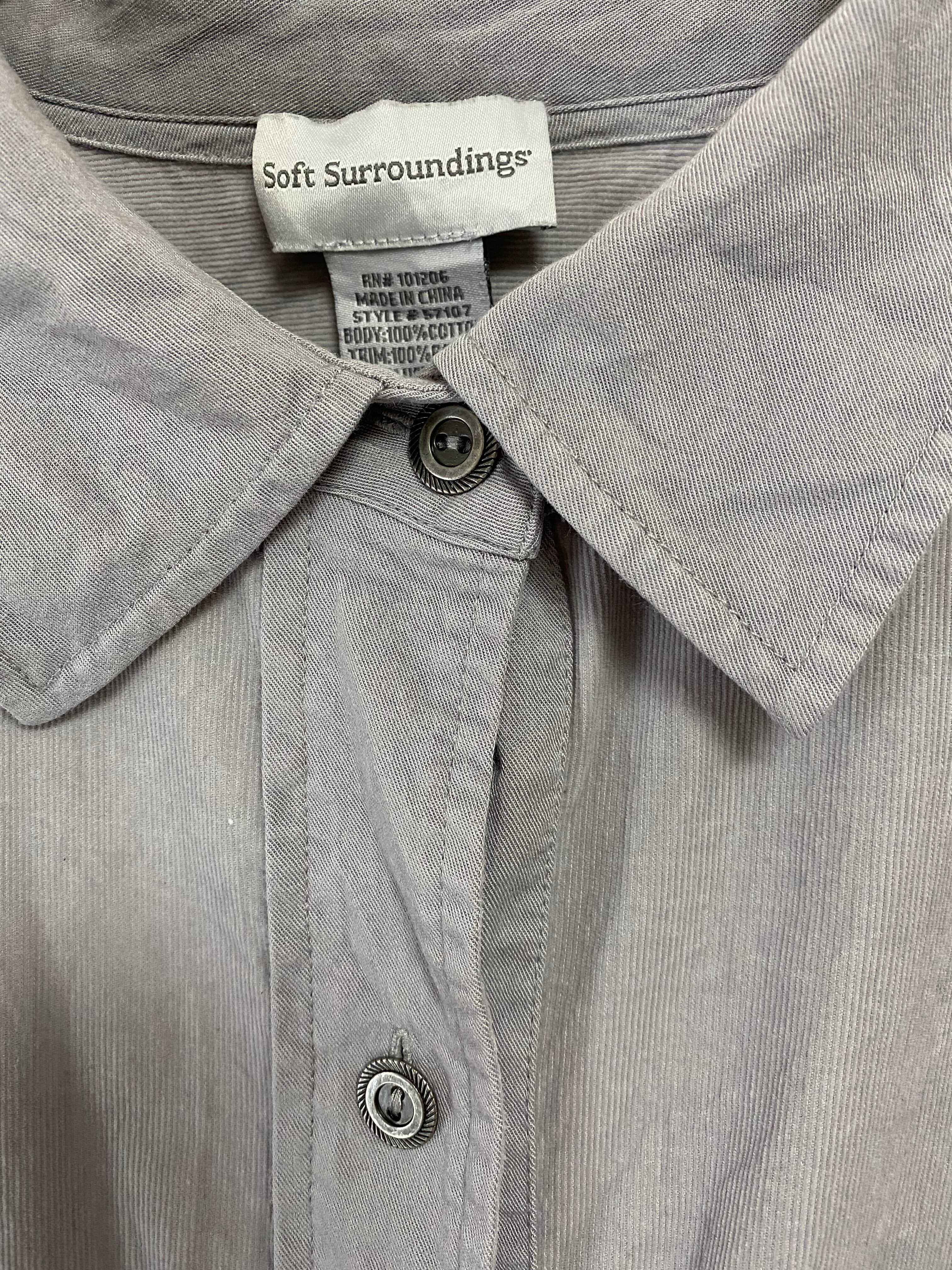 かなり細畝な薄手コーデュロイシャツに、よーく後ろを見ると同系色刺繍で荘厳で流麗なタッチの植物&天使が…!イイです!!