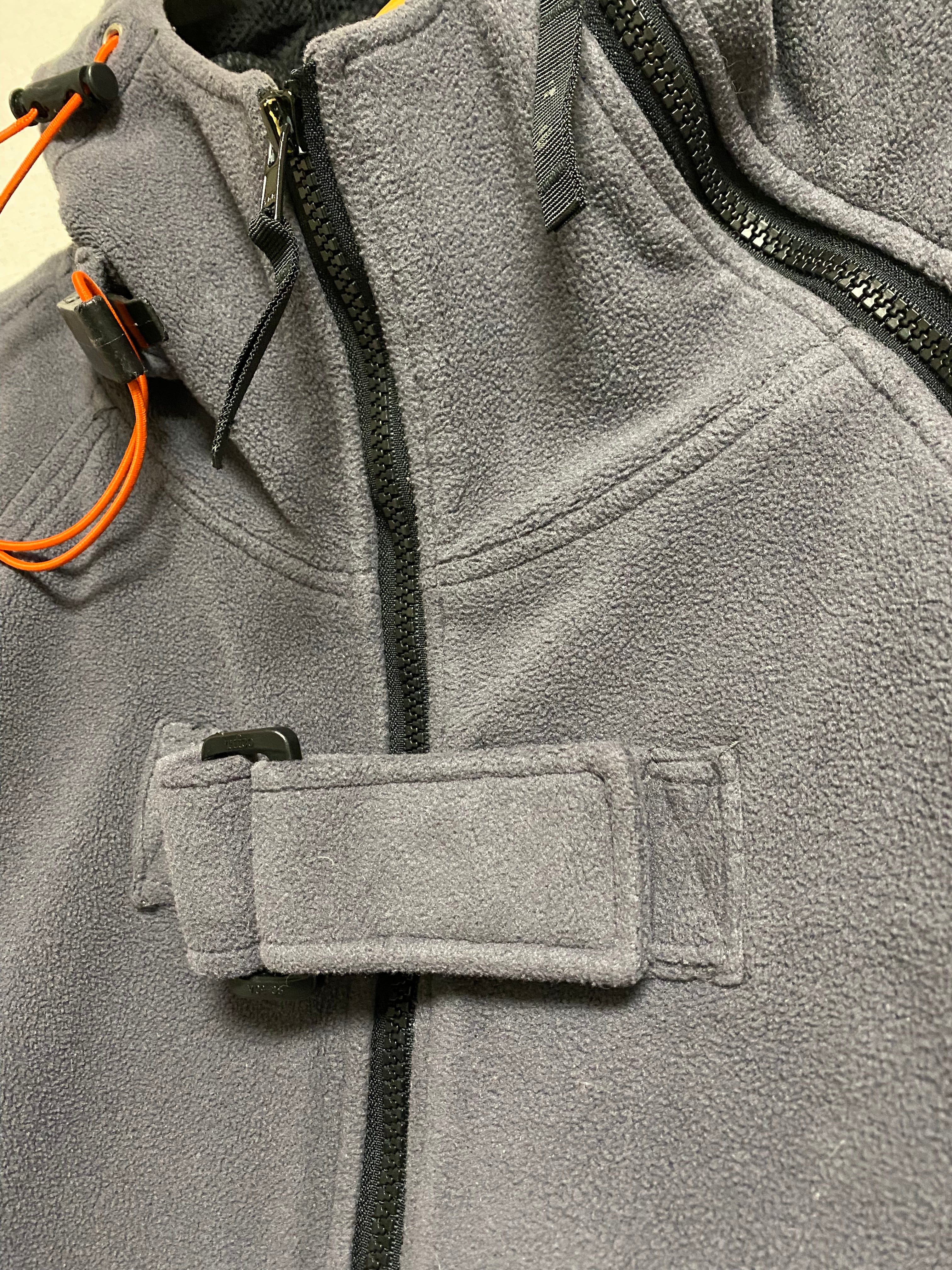オレンジ紐、ジップ、ベルクロと非常に良いデザインがフリース地の中で各所に展開!しかも袖口には手袋まで付いていて、良いアウターですね!