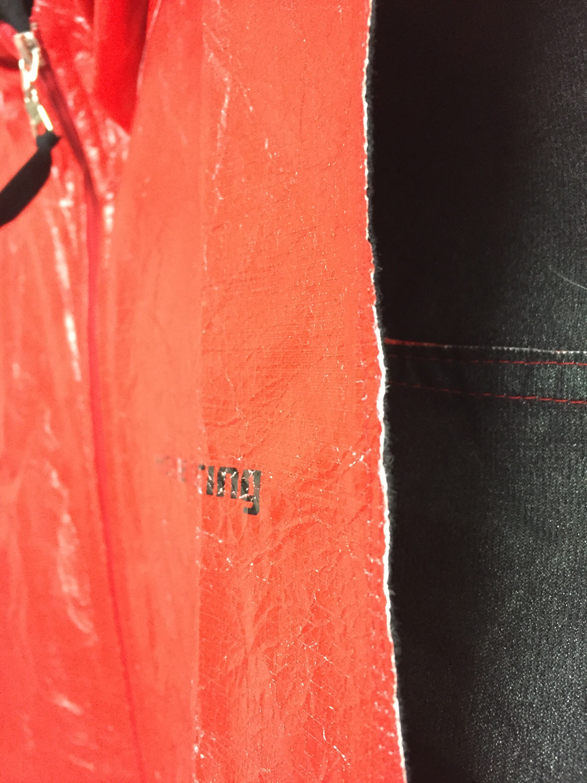 Hondaのレーシング用アパレル?このペーパージャケットのような独特のポリエチレン生地感と赤黒カラーリングとの組み合わせの相性がすごく良いです。