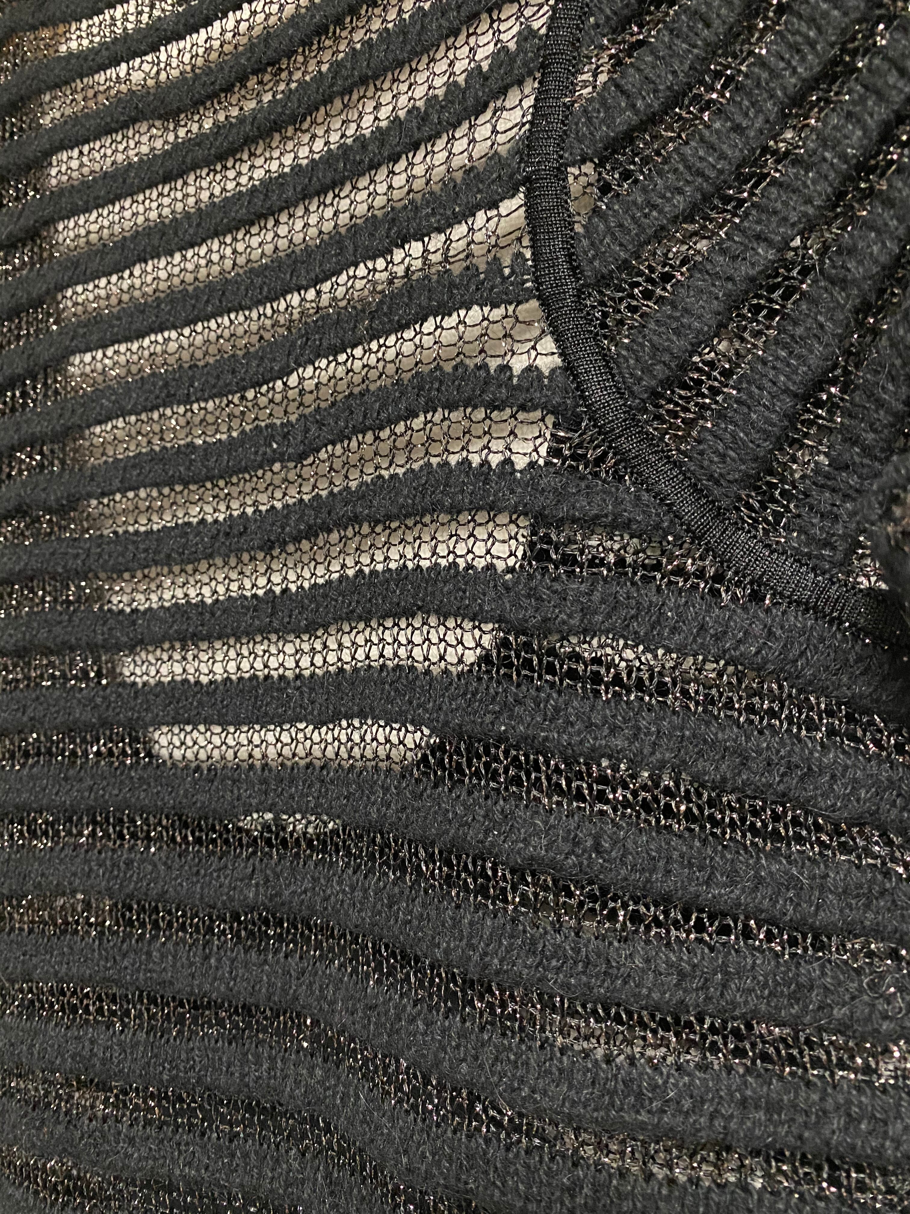 ボーダーがシースルー状に編まれて、シルエットもタイトでフェティッシュな一着。