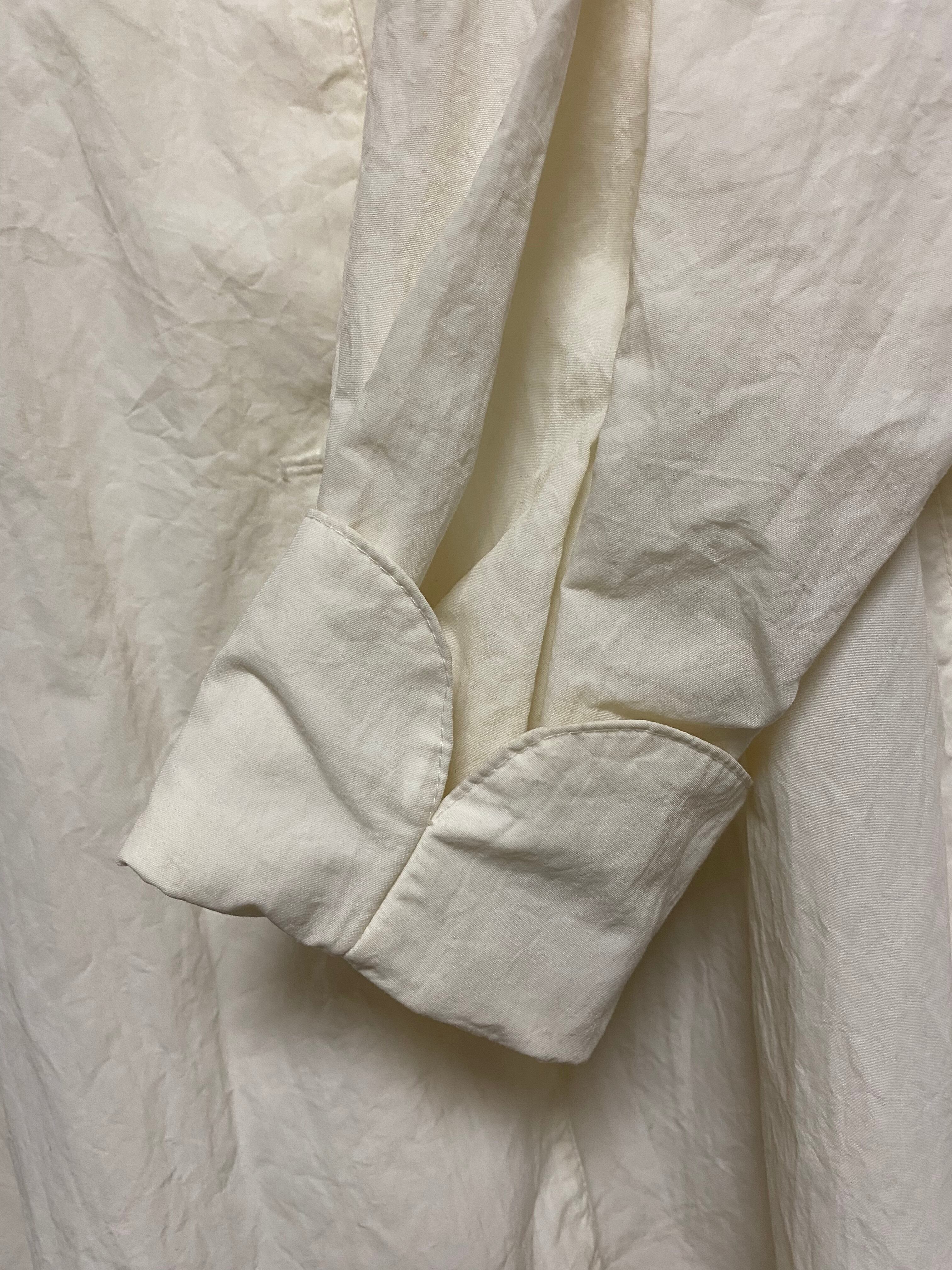 袖口は折り返しても、伸ばしても(本来の着方ではないですが)どちらも面白い感じで着れると思います。ベーシックだし春や初夏に最適!ぜひ!