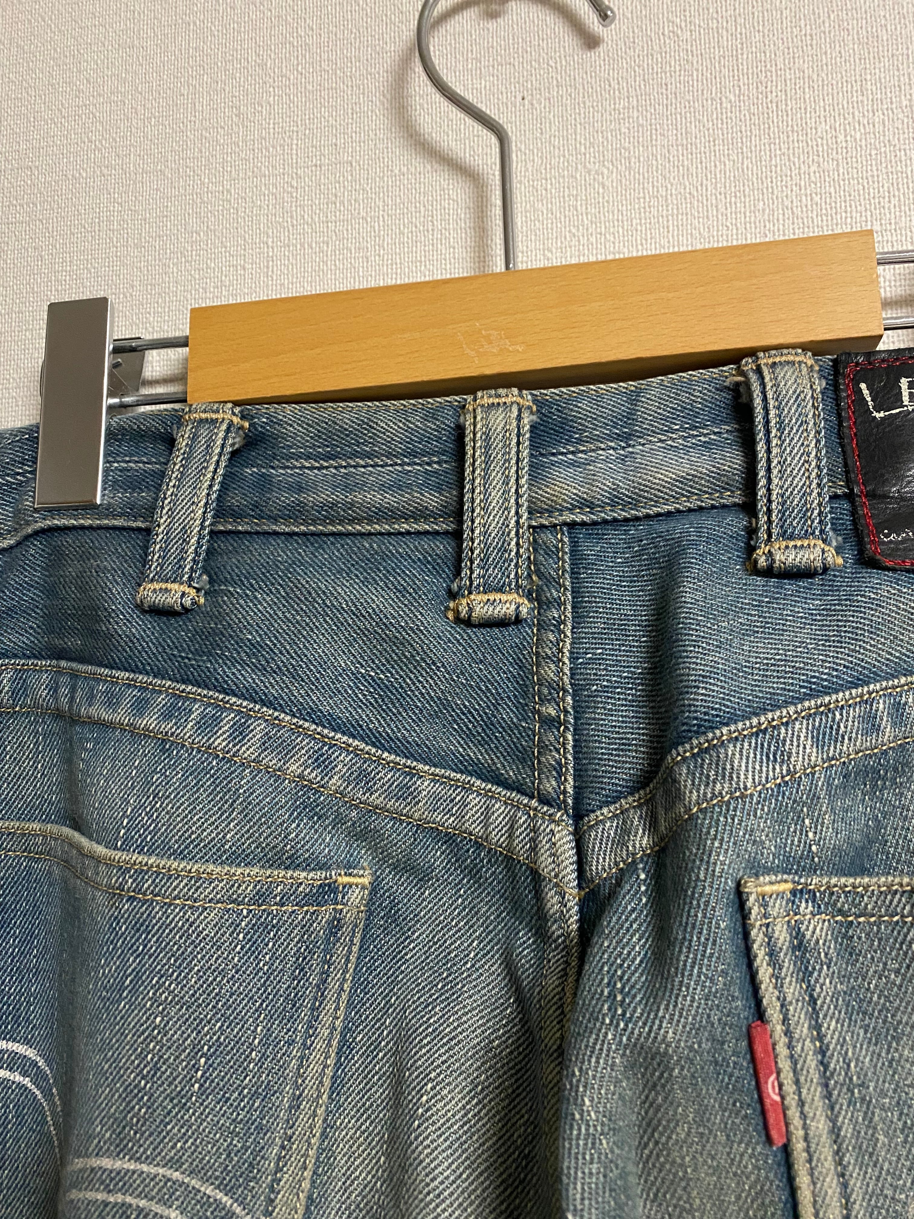 1999〜2009年まで存在していたプレミアムライン(2021年から再始動してる)で、2000年代前半の当時流行っていた立体裁断をかなり実験的な形で取り入れたような斬新なデザインも多くリリースされており、こちらもその頃の物ですが、比較的オーソドックスに使い易いタイプの一本かと。とはいえ内側の縫製や細かいディティールのデザイン等をよく見ると、相当凝った、変わった作りのデニムパンツだと分かるはず。