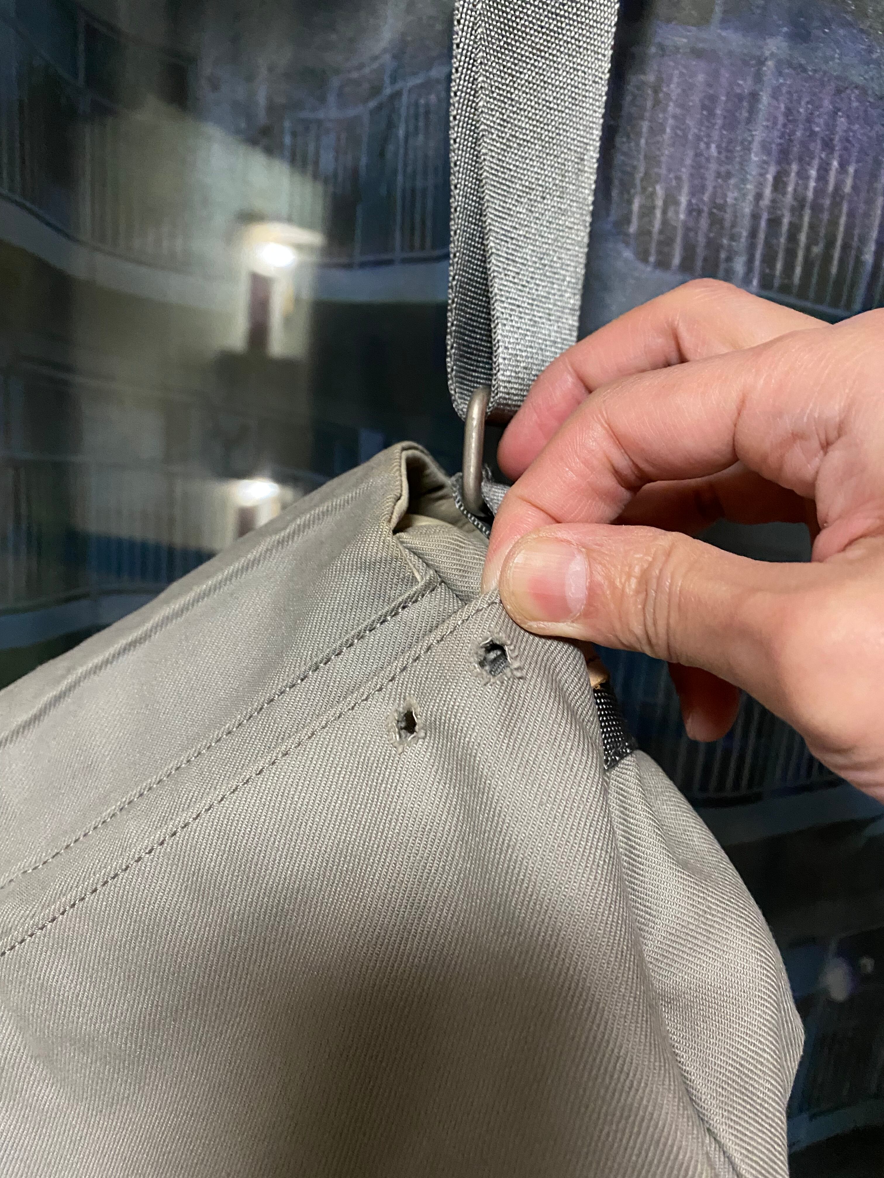 ちなみに、内側のハトメが欠損しちゃってる様子ですが、使用に関しては何も支障はありませんし、閉じてる分にはその部分は見えないので、気にせずご使用頂けるはずです。