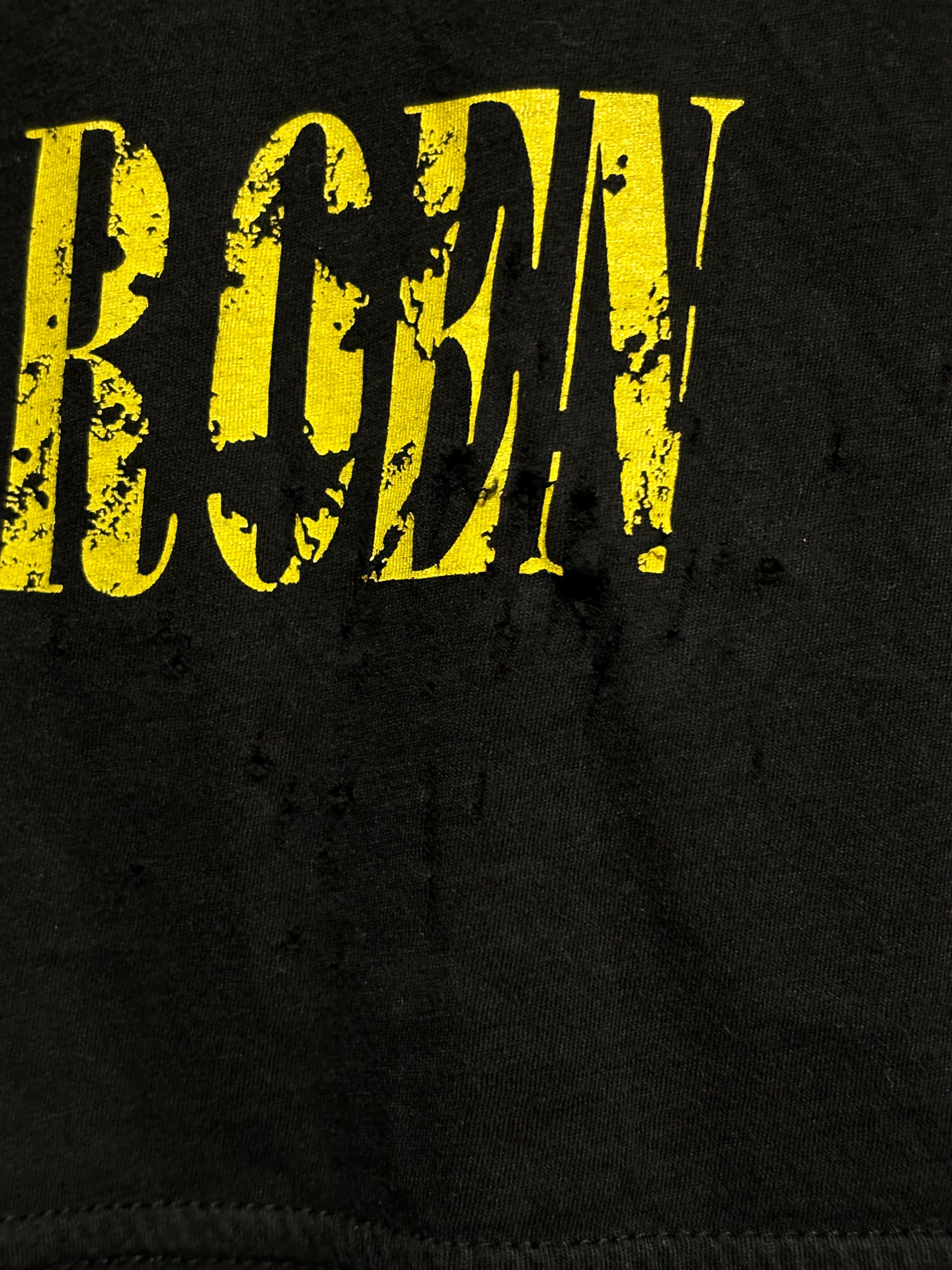 ※プリントの下の方、お腹あたりの生地に小さい穴が多数ありますが、元からのデザインなのか、後から出来た穴なのか、どちらなのか分からないくらい馴染んでますので、気にしないで着用できるかと思います。念のため記載しておきました。